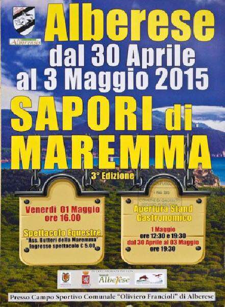 Il primo maggio, come ogni anno, il campo sportivo di Alberese ospiterà lo spettacolo equestre dei butteri, con l’Associazione Butteri della Maremma. La festa si dilaterà dal 30 aprile al 3 maggio con la Sagra “Sapori di Maremma” e il suo stand gastronomico.