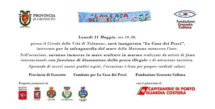 Il Progetto ‘La Casa dei Pesci’, che verrà inaugurato il prossimo 11 maggio, nasce dall’incontro tra Paolo Fanciulli e il Consorzio Naturalmente Toscana delle Aziende del Parco Naturale della Maremma, supportato da un grande numero di associazioni culturali e ambientaliste (WWF Italia, Italia Nostra, ecc.), di associazioni sportive, dei molti Gruppi di Acquisto Solidale, di privati, con un ampio riscontro su tutto il territorio nazionale e estero. Il Progetto ha il patrocinio del Comando Generale del Corpo delle Capitanerie di Porto e il supporto della Regione Toscana, della Provincia di Grosseto, e dei Comuni di Grosseto, Orbetello, Castiglione della Pescaia e Magliano in Toscana, attraverso la Fondazione Grosseto Cultura per il coordinamento dell’intervento pubblico. L’inaugurazione si terrà il giorno 11 maggio alle ore 10:30 a Talamone, presso il Circolo Velico. La Casa dei Pesci ha scelto di salvaguardare il mare della Maremma attraverso l’arte. ]]>