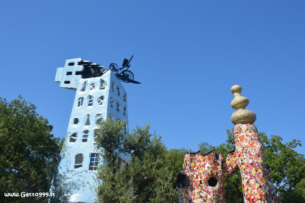 Jean Tinguely chiusa da un enorme lucchetto, l’Albero della vita, i cui rami sono teste di serpente e il fusto è ricoperto da iscrizioni e disegni dell’artista. E ancora il Diavolo, il Mago, il Sole, la Ruota della Fortuna e gli altri arcani. Il giardino è un vero e proprio museo a cielo aperto, perfettamente inserito nel paesaggio collinare della Maremma, un parco di eccezionale fascino, unico al mondo, uno degli esempi d’arte ambientale più importanti d’Italia.
